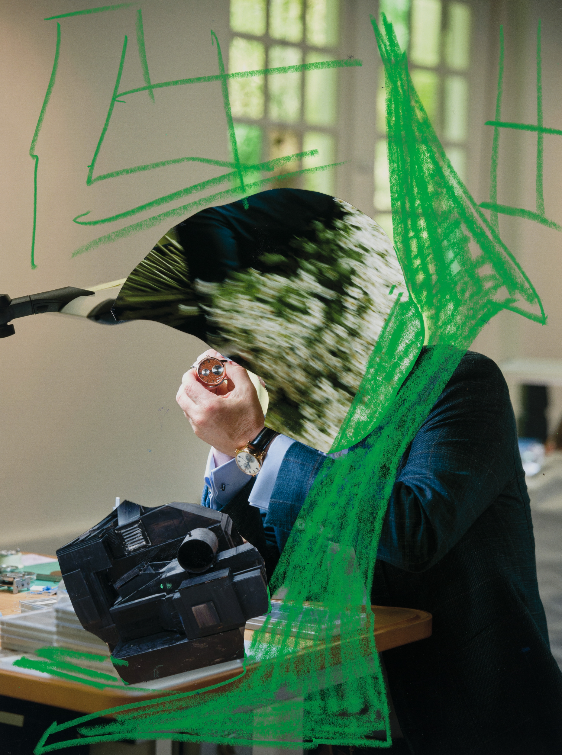We’ve known Sergei and his work for over a decade, beginning with our deep appreciation of his ongoing photo-based project Close Up and Private, which started in 2009. He describes his methodology as “CONSTRUCTION – DECONSTRUCTION – RECONSTRUCTION,” where existing constructions are radically altered using only two or, at most, three elements—an approach he calls “LESS.” As our in-house tenure was drawing to a close, it presented, for the first time, the perfect opportunity to collaborate—much like the ontology of the new work, which repurposes photographs we’ve created over the last few years as components for entirely new imagery. The end of one chapter served as the perfect occasion for something new, built upon the foundation of three years’ worth of work.