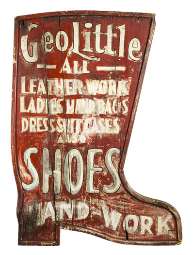 Walter Manning from Old Chum found this beautiful old advertising for leather work on ladies hand bags, dress suit cases and also shoes. The trade sign Geo Little, at Vanes & Folk Art Gallery.